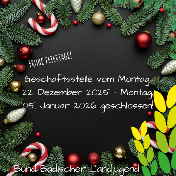 Von Montag, 22. Dezember 2025 - Montag, 05. Januar 2026 hat die Geschäftsstelle geschlossen.